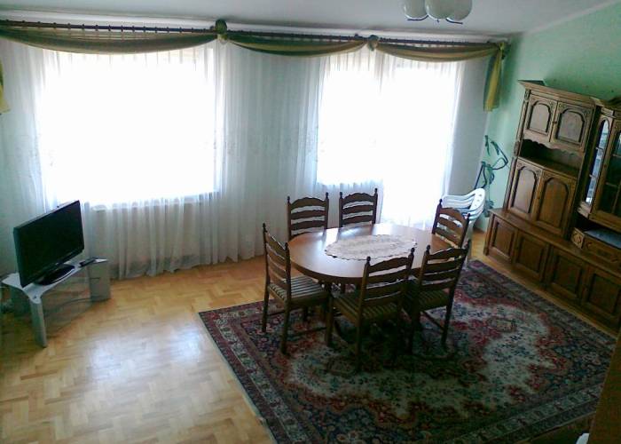 Mieszkanie składa się z trzech pokoi, 2 łazienek z WC, wyposażonej kuchni, słonecznego tarasu. Możliwość korzystania z garażu i miejsca parkingowego przed budynkiem.