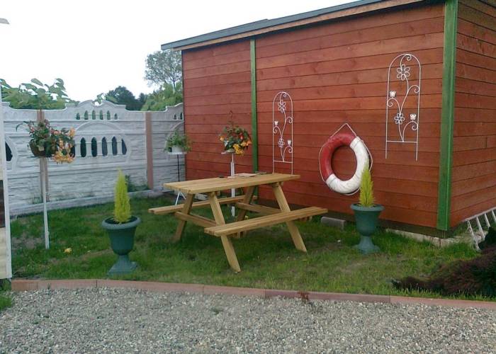 Jeśli pragniecie swobodę,ciszę i spokój , z dala od miasta, rozkoszować się pięknem otaczającej nas przyrody w krainie 44 wysp?...To miejsce jest właśnie dla Was, w ośrodku "Nad Wodą". Domki położone są nad ujściem starej Świny/kraina 44wysp/.Teren ogrodzony,pilnowany.Domki posiadają dwie oddzielne sypialnie.W większej sypialni jest posłanie na dwie osoby/pościel/ każdy ma swojąl/, natomiast druga sypialnia posiada dwa posłania jednoosobowe+ trzecie jest dla dziecka do lat7/8.Salon jest bardzo przytulny i romantyczny,jest w nim kominek dogrzewający na gaz,telewizor ,radio,DVD,bajki dla dzieci i filmy dla starszych,książki.Aneks kuchenny w pełni wyposażony / lodówka,mikrofalówka,naczynia ,garnki,patelnie, kuchenka na gaz z piekarnikiem i wszystko to co jest niezbędne w kuchni by przyrządzić posiłek,zlewozmywak z zimną i ciepła wodą,żelazko.Sanitariat -z natryskiem,brodzik w którym można siedzieć/ręczniki duże / umywalka, WC w jednym domku razem z natryskiem a w drugim domku ma osobne pomieszczenie.Przy każdym domku,jest duży grill,stoły i ławki ,parasol.Posiadamy sprzęt wodny,łódki wiosłowe ,kajaki do dyspozycji gości i motorówkę do zwiedzania okolicznych pięknych wysepek....Plaża i latarnia morska najwyższa w Europie -jest oddalona o 3km.Przystanek autobusowy , 2km jest do promu dla przyjezdnych.Posiadamy parking ale bez zadaszenia.Wystawiamy faktury Vat.Jest już trzeci domek drewniany.Posiada aneks kuchenny /lodówka,mikrofalówka i cały sprzęt potrzebny w kuchni/.Duży pokój/ 23m / na cztery lub 6 osób jest możliwość dostawienia spania za dopłatą.Posłania są dwuosobowe/kanapa i sofa/ ,łóżko piętrowe , ,każdy ma swoją pościel.W pokoju jest telewizor, radio DVD.Domek posiada sanitariat z kabiną prysznicową i brodzik oraz umywalka.Osobne pomieszczenie WC. Preferowane karty rezerwacyjne i 20% zadatku..W każdej kwestii możemydojść do porozumienia.Opłata klimatyczna 4 zł /osobo-doba / dzieci do lat 7 zwolnieni od opłat.