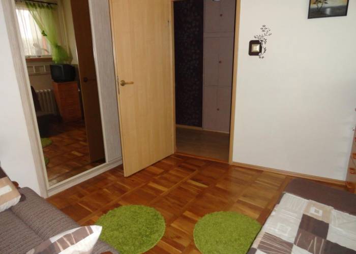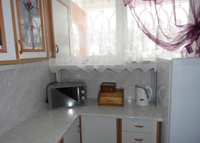 Mieszkanie kompletnie wyposażone, m.in. lodówka, zamrażarka, piekarnik, pralka, żelazko, zastawa stołowa, pościel, ręczniki. Przygotowane do pobytu 5 osób – dwie dwuosobowe rozkładane sofy i jedna jednoosobowa. W każdym pokoju telewizor, dostęp do internetu. Kuchnia oddzielna w pełni urządzona.