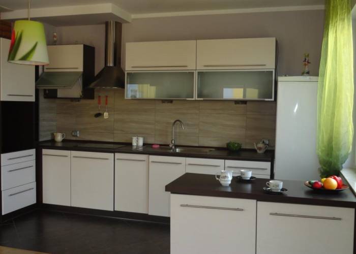 Apartament kompletnie wyposażony, m.in. płyta ceramiczna, mikrofala, lodówka, zamrażarka, toster, ekspres do kawy, telewizor, wieża, dostęp do internetu, żelazko, deska do prasowania, pościel, ręczniki.