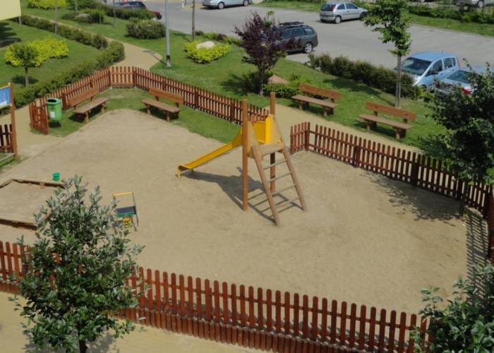 Ciche osiedle - zamknięte, monitorowane, z numerowanym miejscem parkingowym przynależnym do apartamentu i ogrodzonym placem zabaw dla dzieci.