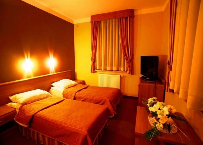 Hotel posiada pokój przystosowany dla osób niepełnosprawnych. Każdy pokój wyposażony jest w dostęp do internetu, TV SAT, radio i telefon oraz przestronną łazienkę z kabiną prysznicową lub wanną. Na terenie hotelu zapraszamy do Restauracji oraz Baru. Hotel posiada pokój dla dzieci - wyposażony w gry i zabawki oraz komputer z bezpłatnym dostępem do Internetu. Na terenie budynku znajduje się Salon rekreacyjny z Sauną suchą , łaźnią parową, 4 osobowym Jazzuzi oraz Gabinet Kosmetyczny i salon masażu.