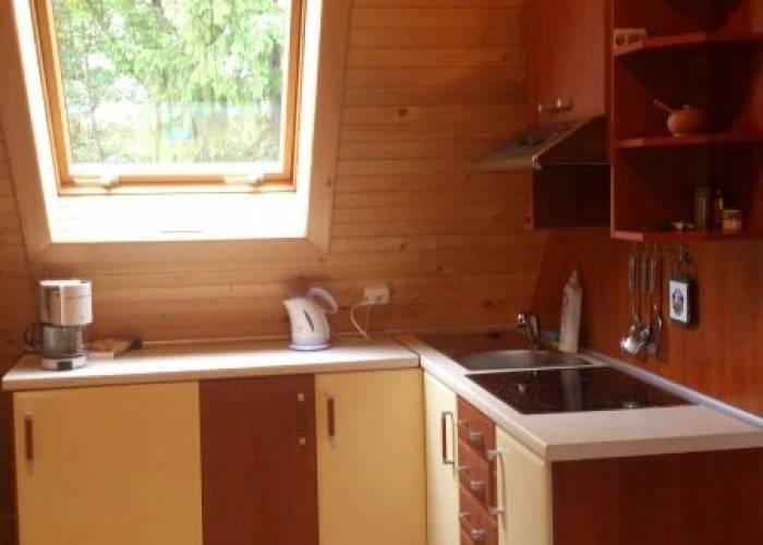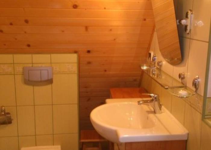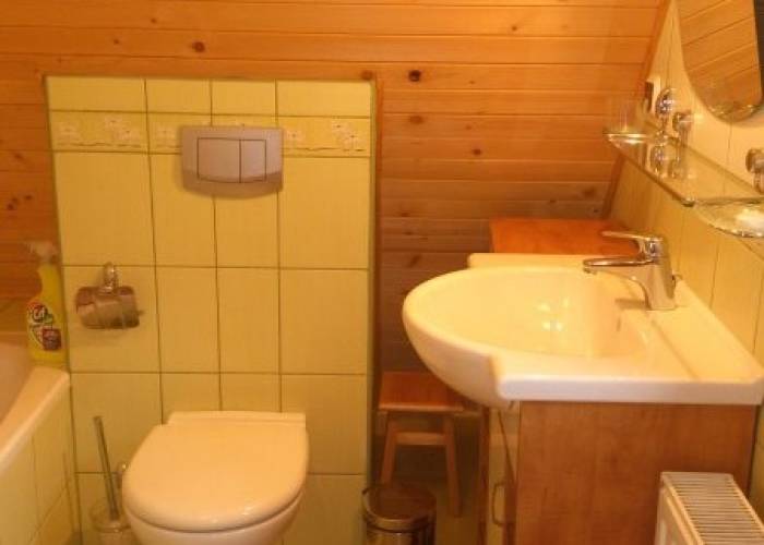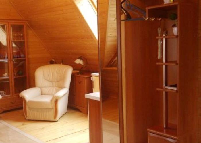 Apartament znajduje się w drewnianym domku oddzielonym od reszty zabudowań.