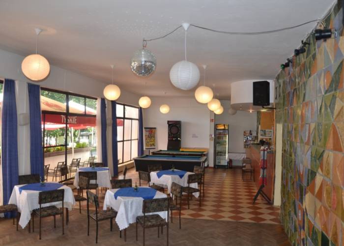 • stołem do ping-ponga, bilardem, innymi grami zręcznościowymi (lotki, piłkarzyki)