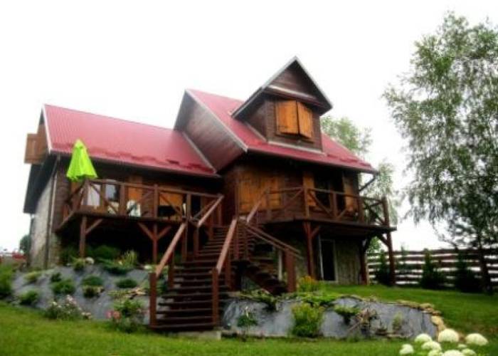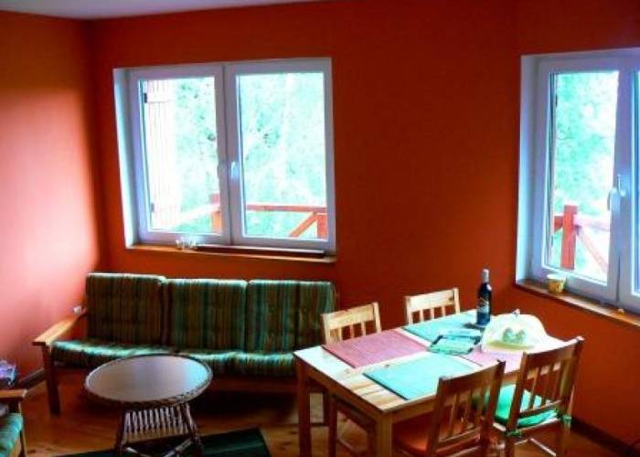 1/ dom - apartament na 10 osób z 5 sypialniami, aneksem wypoczynkowym z kominkiem, łazienkami, kuchnią, pięknie położonym tarasem,