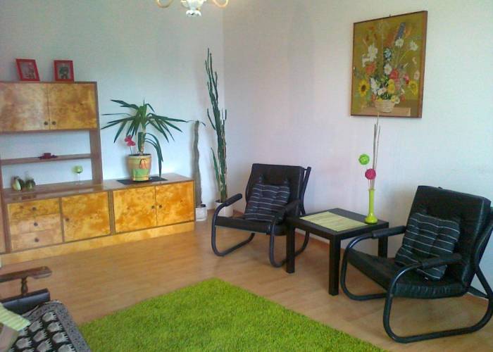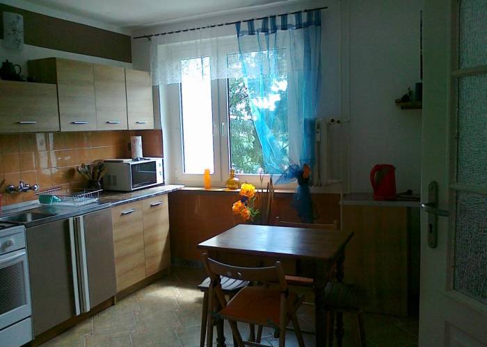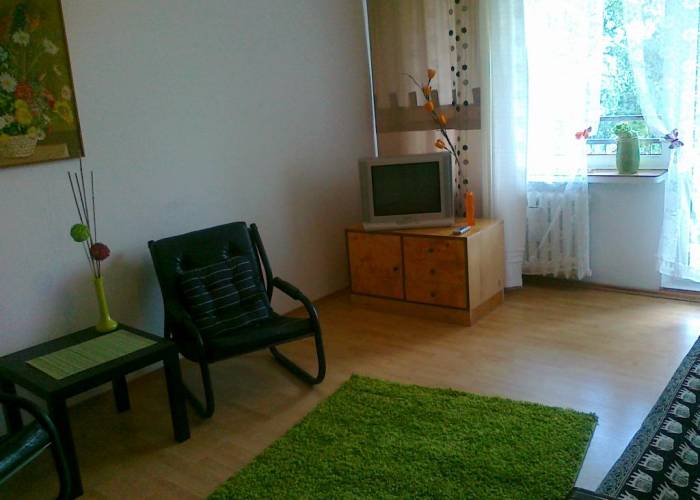 Mieszkanie przeznaczone dla 4 osób – 2 pokoje , w każdym dwuosobowa, rozkładana sofa. Kuchnia duża, oddzielna. Mieszkanie kompletnie wyposażone: 4-palnikowa kuchnia gazowa z piekarnikiem, lodówka z zamrażalnikiem, mikrofala, pralka, żelazko, deska do prasowania, zastawa stołowa, sprzęt RTV, pościel, ręczniki.