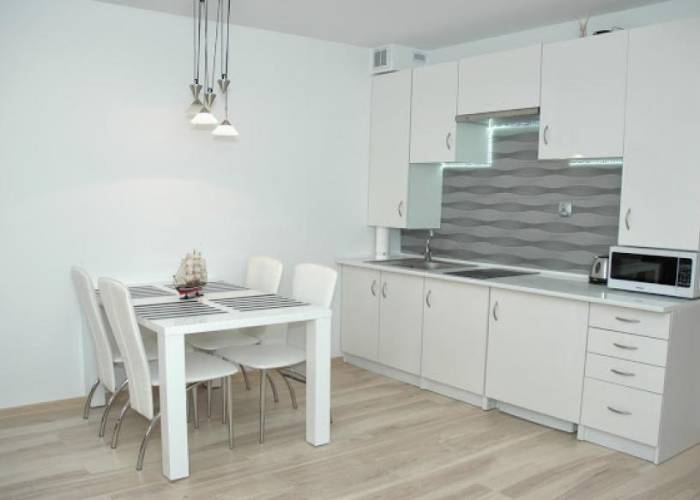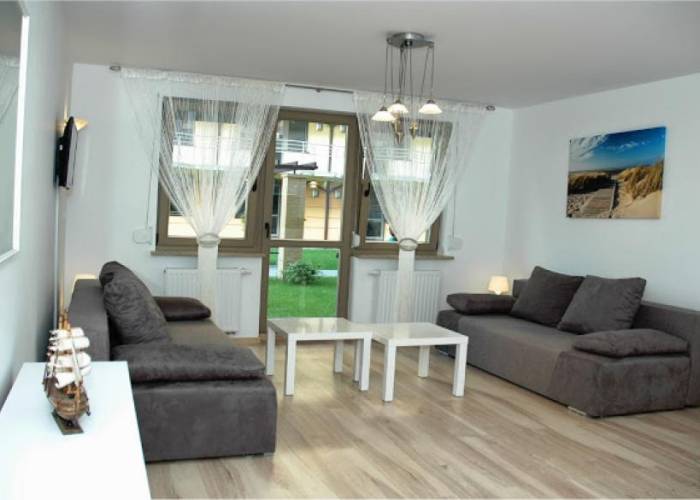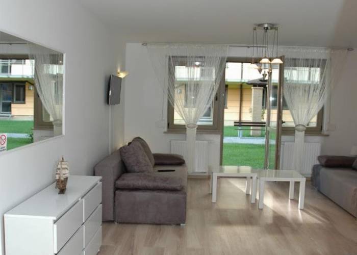 Oferujemy Państwu wypoczynek w komfortowo wyposażonych 1 pokojowych apartamentach (dla 2-4 osób) o powierzchni 30 m2 mieszczącym się na parterze z bezpośrednim wyjściem na własny ogródek o pow. 31 m2 w nowo wybudowanym budynku.