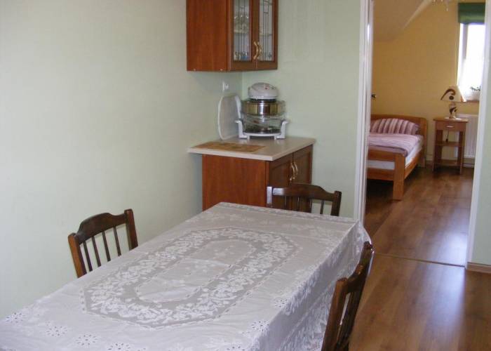 Jest ono usytuowane na parterze, ma 2 pokoje, kuchnię, łazienkę, przedpokój. Posiada taras z wyjściem na ogród i widokiem na okoliczne góry. Można korzystać z wypoczynku w ogrodzie i grillować. Kuchnia jest wyposażona we wszystkie niezbędne naczynia oraz lodówkę, piec gazowy, czajnik bezprzewodowy, ekspres do kawy. Zawsze zapewniamy czystą pościel, koce, ręczniki, deskę do prasowania, żelazko, suszarkę do włosów. Mieszkanie przeznaczone jest dla 4 osób, posiada jedno 2-osobowe łóżko i w drugim pokoju 2 łóżka 1-osobowe. Przy większej ilości osób jest możliwość udostępnienia dodatkowego dużego pokoju dla 2 osób, z łazienką i balkonem. W okolicy jest wiele ciekawych miejsc, które warto zobaczyć i można przyjemnie spędzić czas latem i zimą. Zapytania o rezerwacje tylko telefonicznie 532535621. Zapraszamy