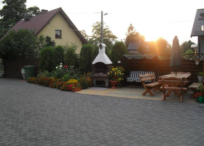 Do dyspozycji gości plac wypoczynkowy ze stołem, huśtawka, grill, możliwość odpoczynku pod wiatą. Parking na terenie posesji.
