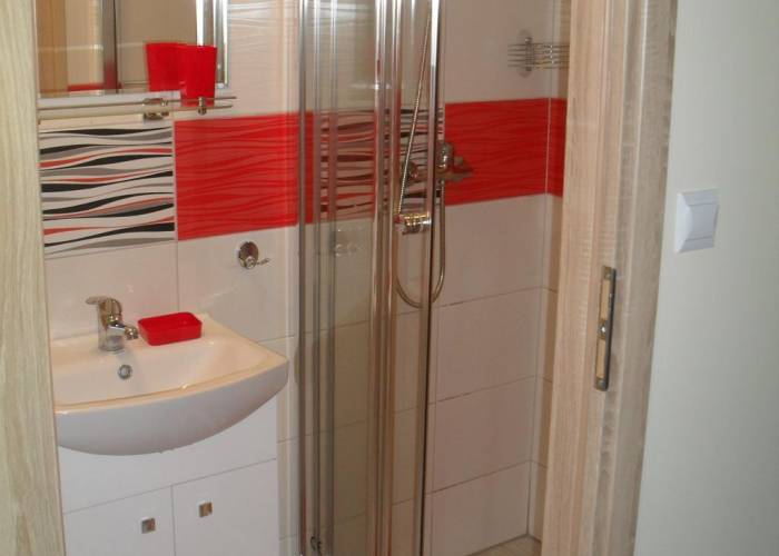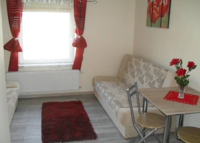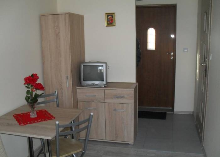 dwie kawalerki , w każdej pokój z łazienką z aneksem kuchennym ( lodówka,czajnik, szklanki,talerze,sztućce )również z osobnym wejściem, tv, dostęp do internetu.