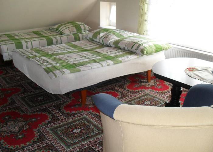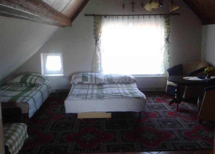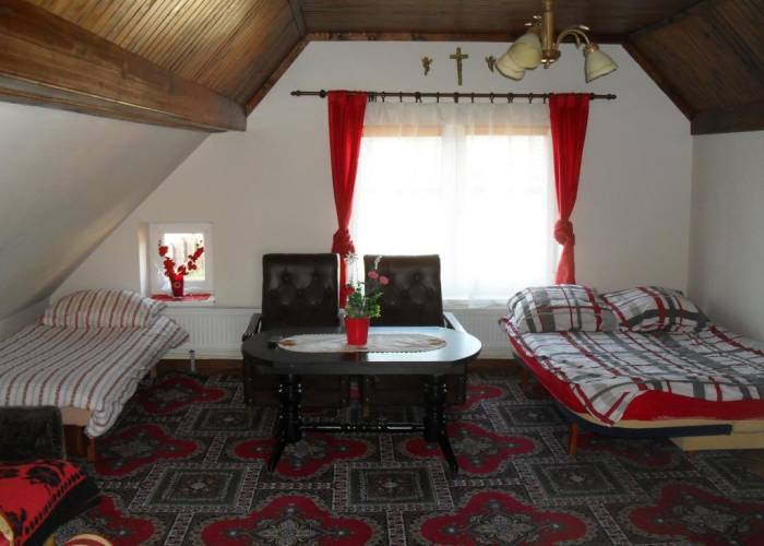 poddasze, duży pokój z drugim mniejszym, z kuchnią wyposazoną w( lodówkę,kuchenkę gazową,mikrofalę, czajnik, szklanki,talerze,sztućce) z łazienką w domku jednorodzinnym z osobnym wejściem, tv, dostęp do internetu ,