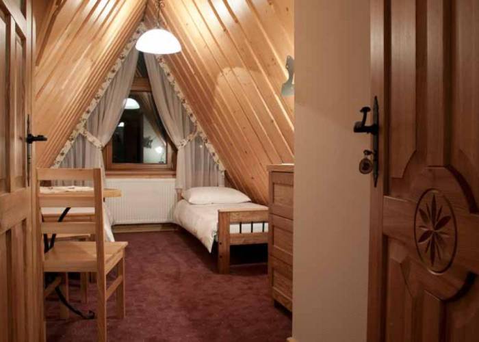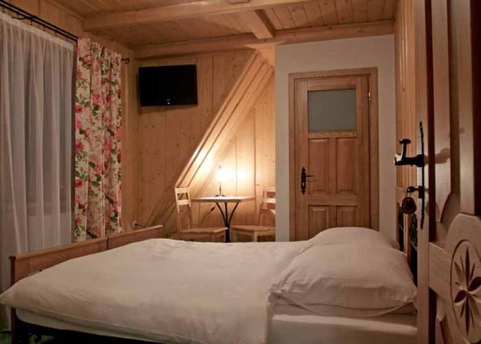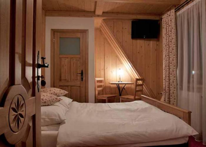 Wystrój pomieszczeń umiejętnie łączy elementy tradycyjne z nowoczesną, subtelną elegancją. Z myślą o wygodzie odpoczywających przygotowaliśmy 10 estetycznych i funkcjonalnych 2,3 i 4 osobowych pokoi. Swoich gości traktujemy z góralską gościnnością, zapewniamy miłą domową atmosferę. Zapraszamy.