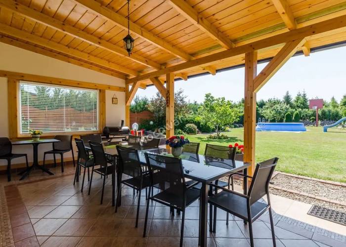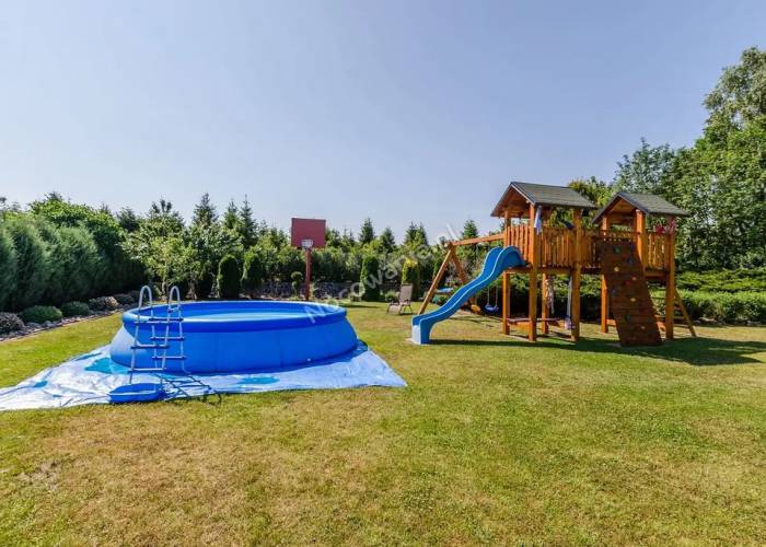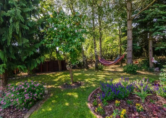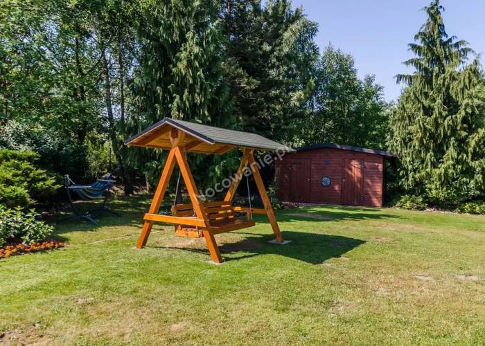 Dom ma 2 duże tarasy, jeden zadaszony przy ogrodzie, drugi otwarty z widokiem na odległe o 200m Jezioro Kamienickie. Bardzo duży (2000m) i zadbany ogród, plac zabaw dla dzieci, karuzela, zabawki, mini plaża, piaskownica, zabawki, duża zjeżdżalnia z basenem, 3 hamaki, 3 huśtawki, 2 hulajnogi, piłki, lotki, kosz do koszykówki, trampolina, meble ogrodowe, domek ze ścianką wspinaczkową, leżaki, zadaszona altana, stół do tenisa, stół z piłkarzykami, dart, miejsce na ognisko, duży grill z wędzarnią. Dla miłośników turystyki rowerowej udostępniam 4 rowery dla dorosłych i 2 rowerki dziecięce. Zapewniam miejsce na przechowanie rowerów gości. W okresie letnim jest w ogrodzie wystawiony duży basen rozporowy (o wymiarach 4,77x 0.90)