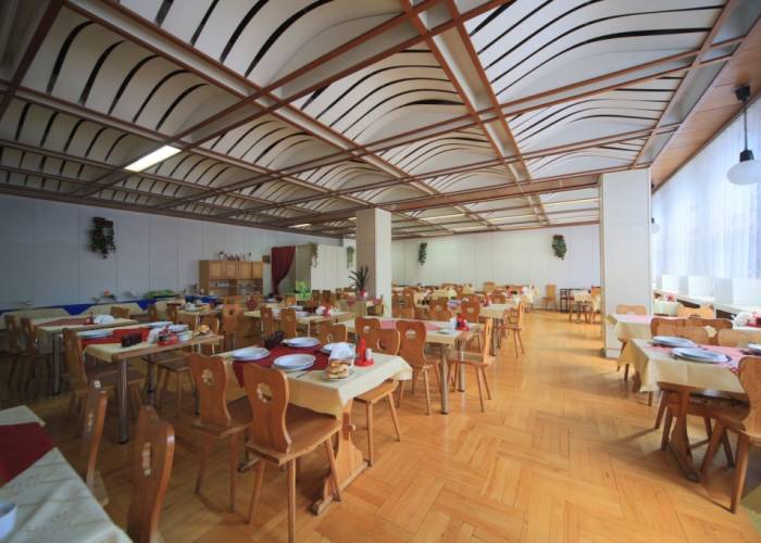 W głównym budynku znajduje się jadalnia, w której serwowane są dania kuchni polskiej. Całodzienne wyżywienie obejmuje 3-posiłki: śniadania, obiady i kolacje.