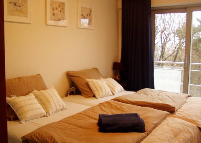 Apartamenty 2 pokojowe z aneksem kuchennym, balkon, taras widokowy, sauna, basen w okresie letnim. Komfort 50 metrów od brzegu morza.