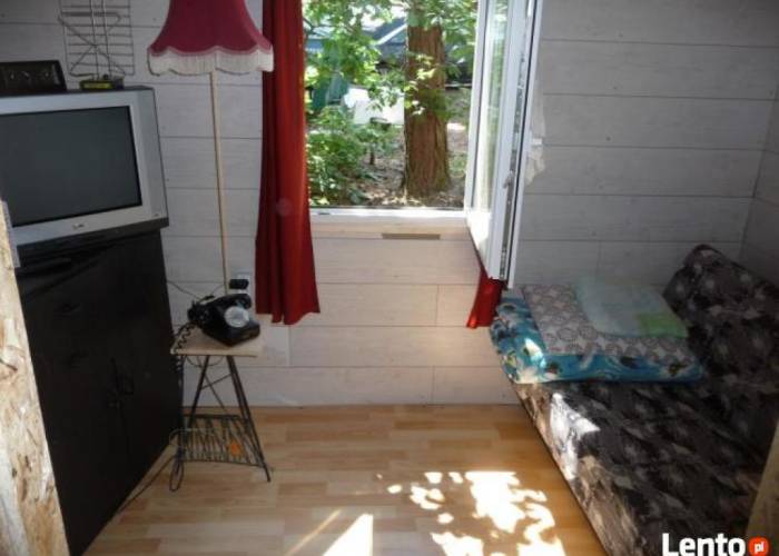 Domek ma 25 m2, 2 pokoje i kuchnia, prąd, 2 pojedyńcze łóżka i 1 rozkładana kanapa 2 os..w dobrym stanie, możliwość 1 dostawki. Domek świeżo odnowiony, czysty, pachnący. W kuchni kuchenka na gaz, lodówka duża, sztućce, talerze, czajnik el., telewizor 23 cale, taras z 2 wygodnymi fotelami i stołem, jedynie nie ma wc i łazienki- jest 50 m od domku, w ośrodku, teren dozorowany, zamykany na bramę, możliwość parkowania przy domku, spokojnie, bezpiecznie, 20 m od domku jest duży grill dla wszystkich, jest przystań dla łódek, można też wypożyczać łódki i inny sprzęt zapraszam serdecznie, można ze zwierzęciem przyjechać.