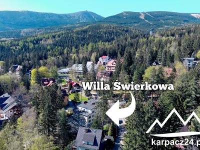 Willa Świerkowa położona jest na wysokości 700 m n.p.m. w cichej, zielonej dzielnicy Karpacza...