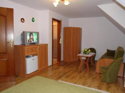 Pokoje są umiejscowione na piętrze z osobnym wejściem. W każdym z pokoi jest łoże małżeńskie...